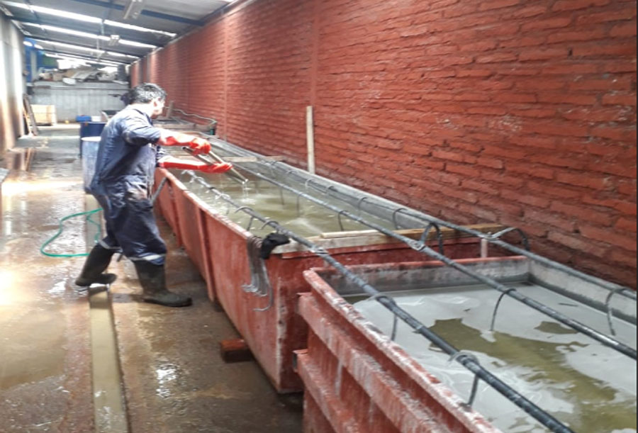 Preparación del Acero para su limpieza en un baño de desengrasante.
